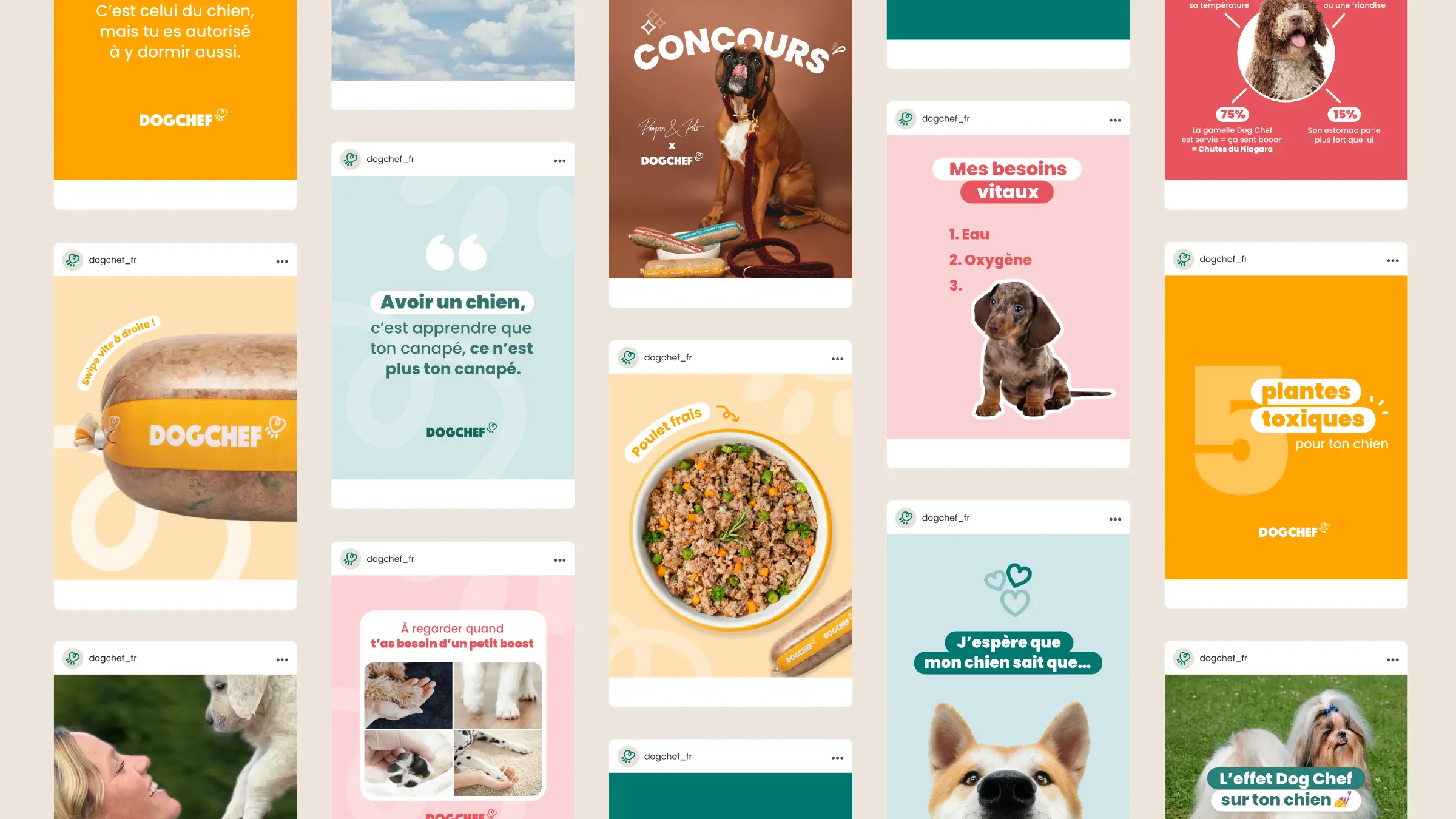 Depuis début 2025, j'accompagne la marque belge de nourriture pour chiens et chats 100% naturelle, fraîche et gourmande en tant que graphiste freelance dans la création de leurs visuels et vidéos fun et gourmandes.