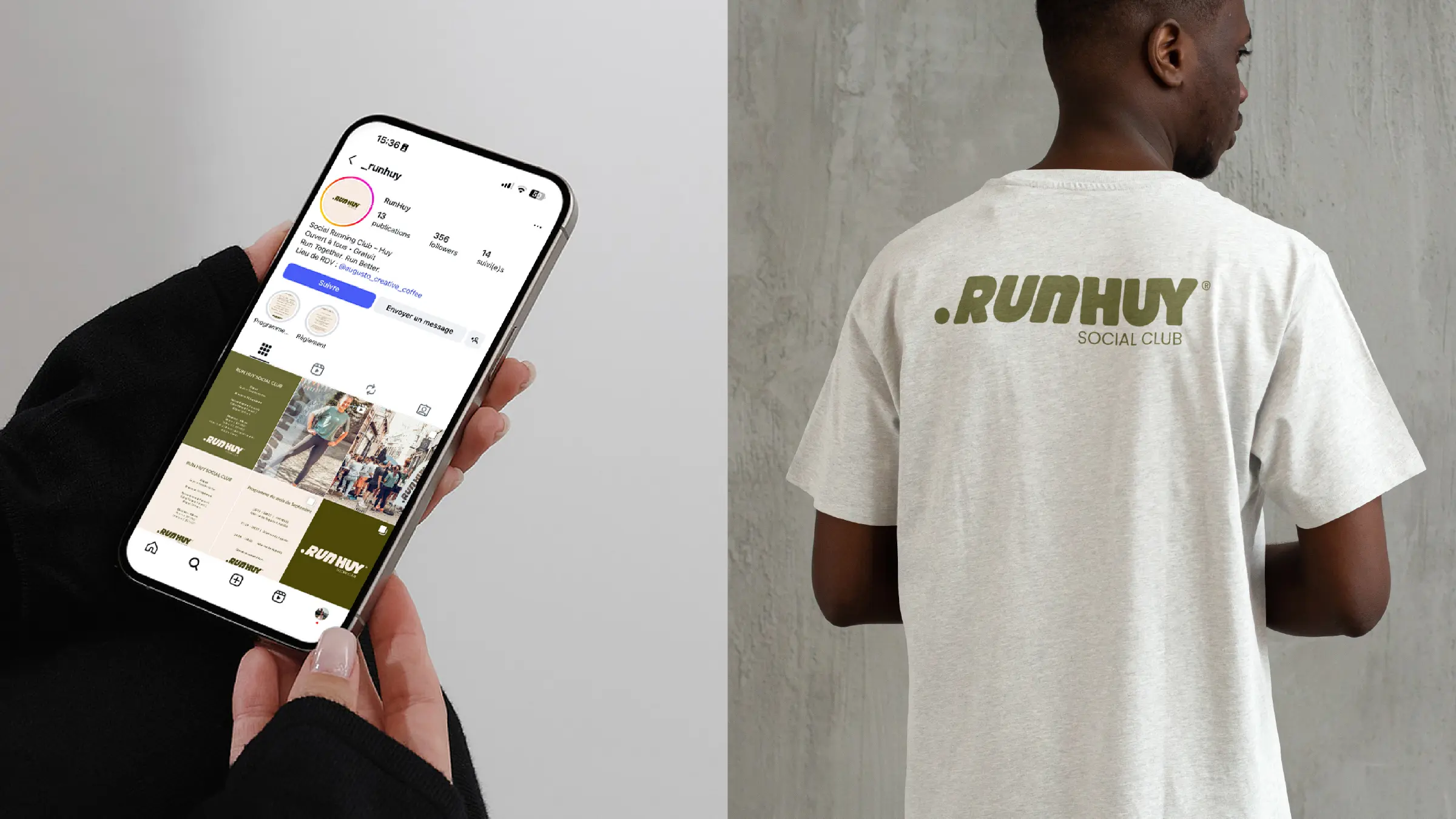 Création d’un logo actuel et épuré pour le club de running Runhuy à Huy, reflétant le mouvement, la communauté et le dynamisme tout en restant facilement déclinable sur tous supports.